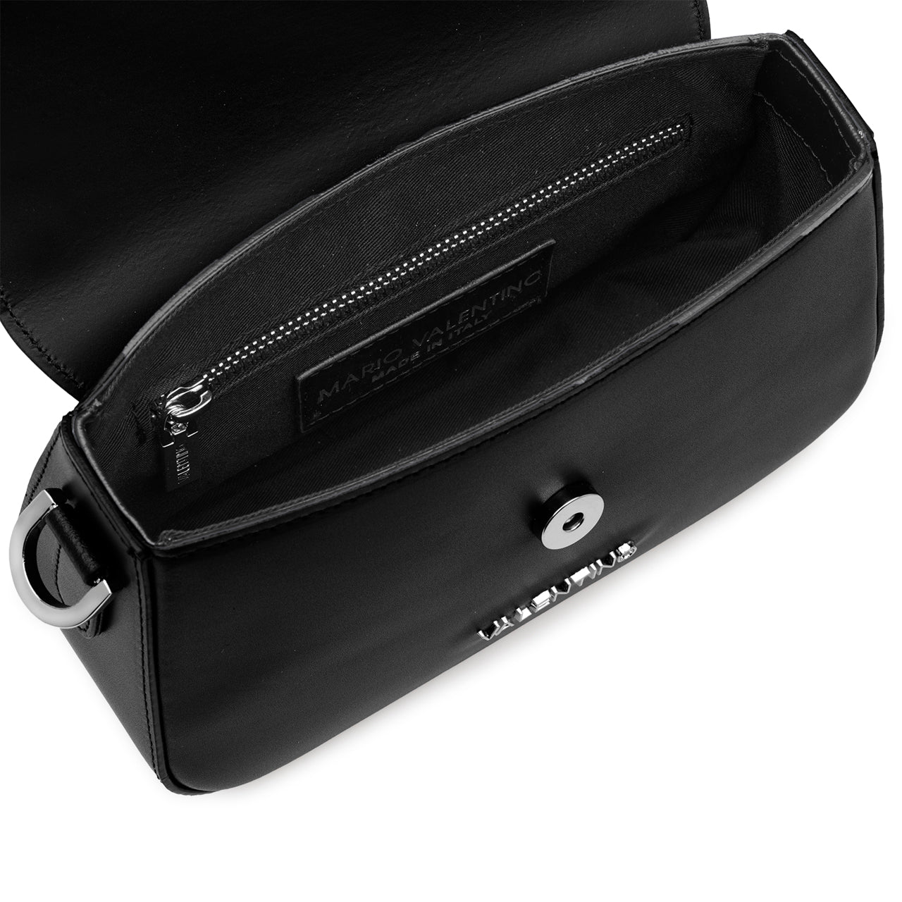 Piccola nelle dimensioni, grande nello stile. La borsa VALENTINO conquista con il suo design pulito e sofisticato, perfetta per completare look quotidiani o da sera. Il manico superiore e la tracolla regolabile aggiungono versatilità e comfort, mentre il logo lettering dorato firma un’eleganza discreta ma decisa.
