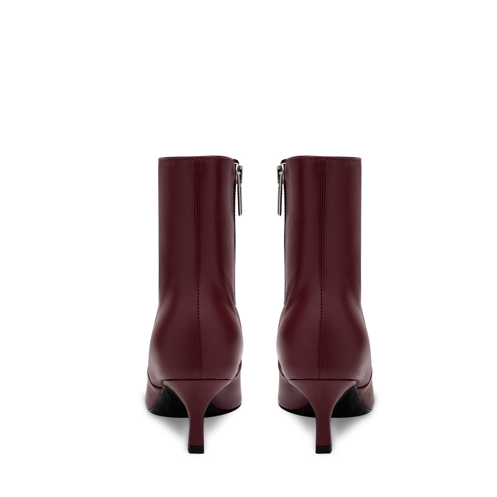 Tronchetto VALENTINO Minimalista ma di carattere. Questo stivaletto in pelle con tacco kitten reinterpreta l’eleganza con uno spirito deciso. La punta affusolata è impreziosita da un dettaglio metallico, per un tocco contemporaneo e distintivo. Pratico da indossare grazie alla zip laterale, è la scelta ideale per look urbani e sofisticati, perfetto sia di giorno che di sera