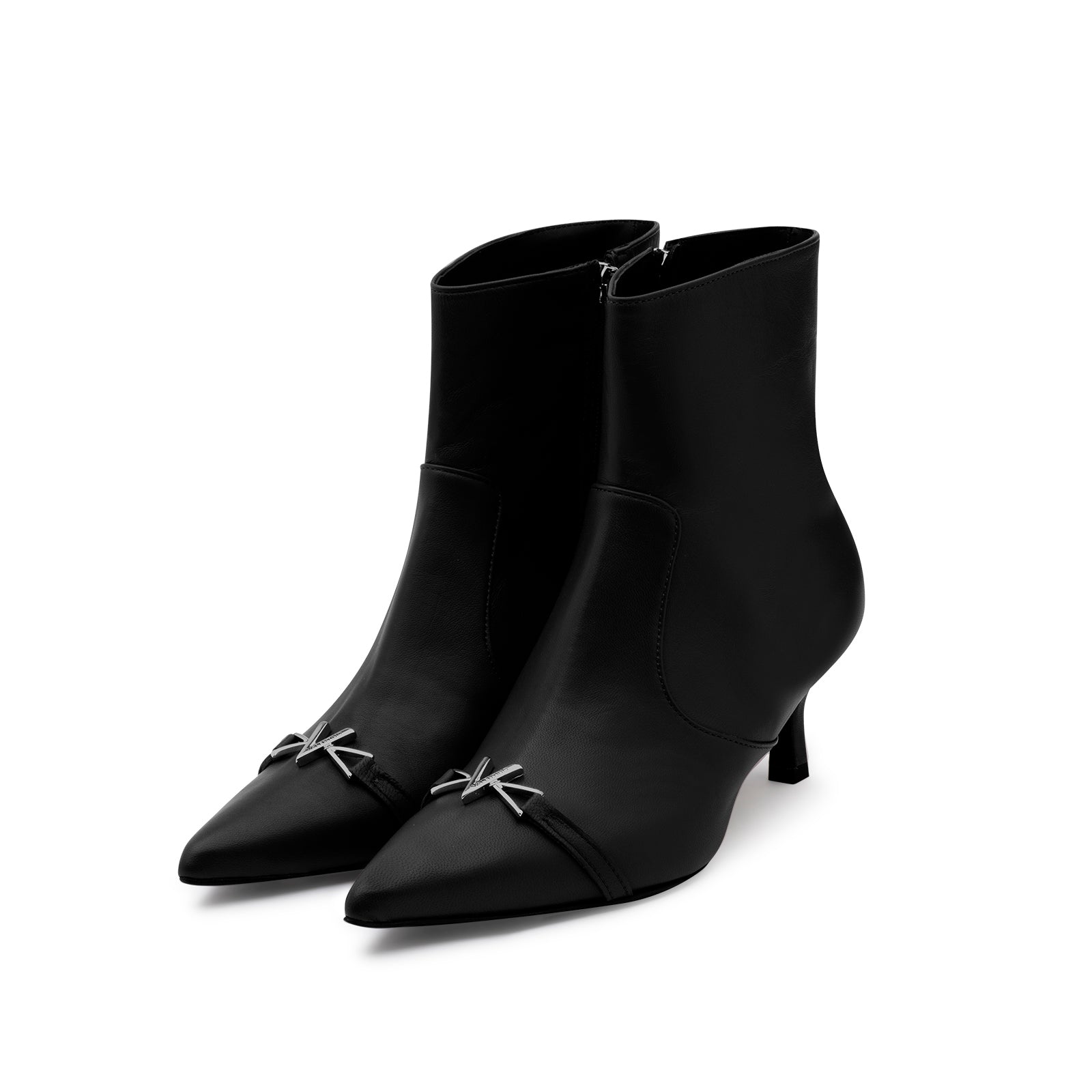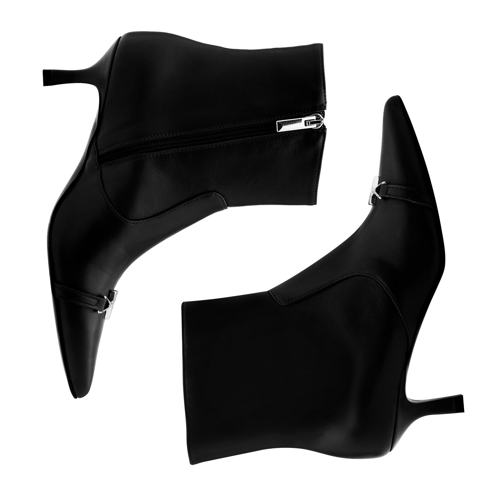 Tronchetto VALENTINO Minimalista ma di carattere. Questo stivaletto in pelle con tacco kitten reinterpreta l’eleganza con uno spirito deciso. La punta affusolata è impreziosita da un dettaglio metallico, per un tocco contemporaneo e distintivo. Pratico da indossare grazie alla zip laterale, è la scelta ideale per look urbani e sofisticati, perfetto sia di giorno che di sera