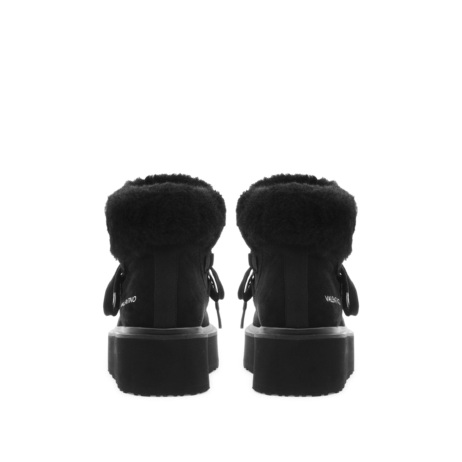 Design contemporaneo e silhouette over, lo stivaletto KIRA è impreziosito dal dettaglio dei profili teddy. Realizzato in tessuto effetto camoscio, presenta una calda e morbida fodera in shearling sintetico. Il comodo platform lace-up matching color assicura il massimo comfort, per una proposta versatile e attuale da indossare all-day-long.