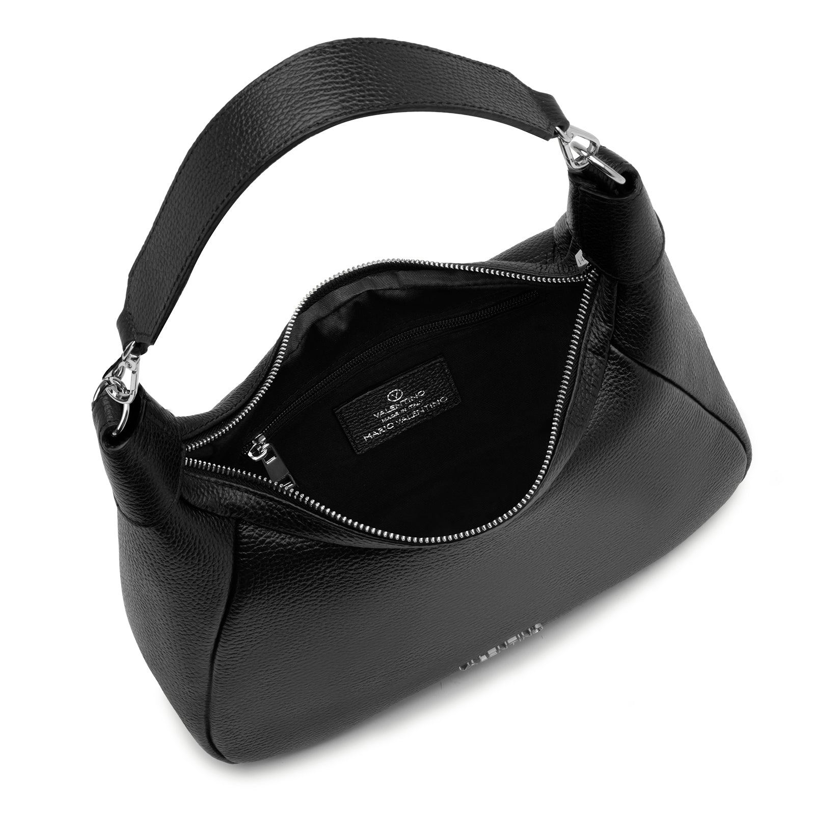 VALENTINO borsa hobo: linee morbide e silhouette compatta definiscono un modello essenziale ma sofisticato. Il design curvo accompagna naturalmente il movimento, mentre la pelle dalla grana delicata dona un look raffinato e contemporaneo. Versatile e funzionale, è pensata per essere indossata sia a spalla che crossbody, adattandosi con disinvoltura alla quotidianità.